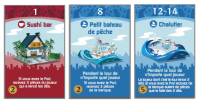 Il est conseillé de jouer chaque établissement violet en un nombre d’exemplaires égal au nombre de joueurs moins un. C’est à dire, à 4 joueurs, seulement 3 établissements violet de chaque. À 3 joueurs, seulement 2 établissements violets de chaque. À 2 joueurs, seulement 1 établissement violet de chaque.